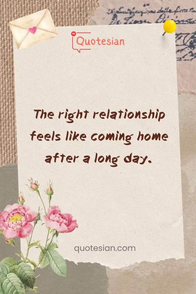 “The right relationship feels like coming home after a long day.”