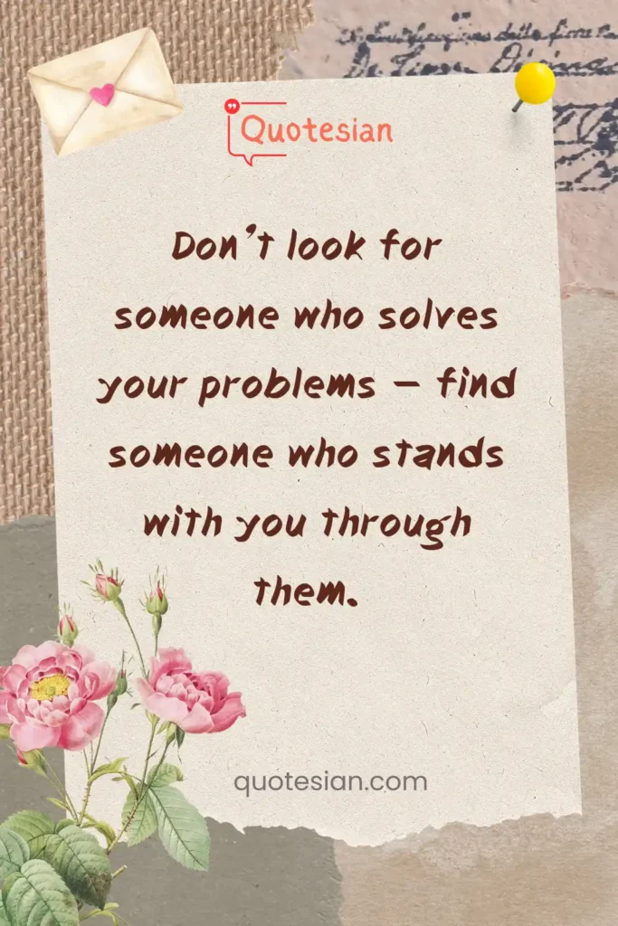 “Don’t look for someone who solves your problems — find someone who stands with you through them.”